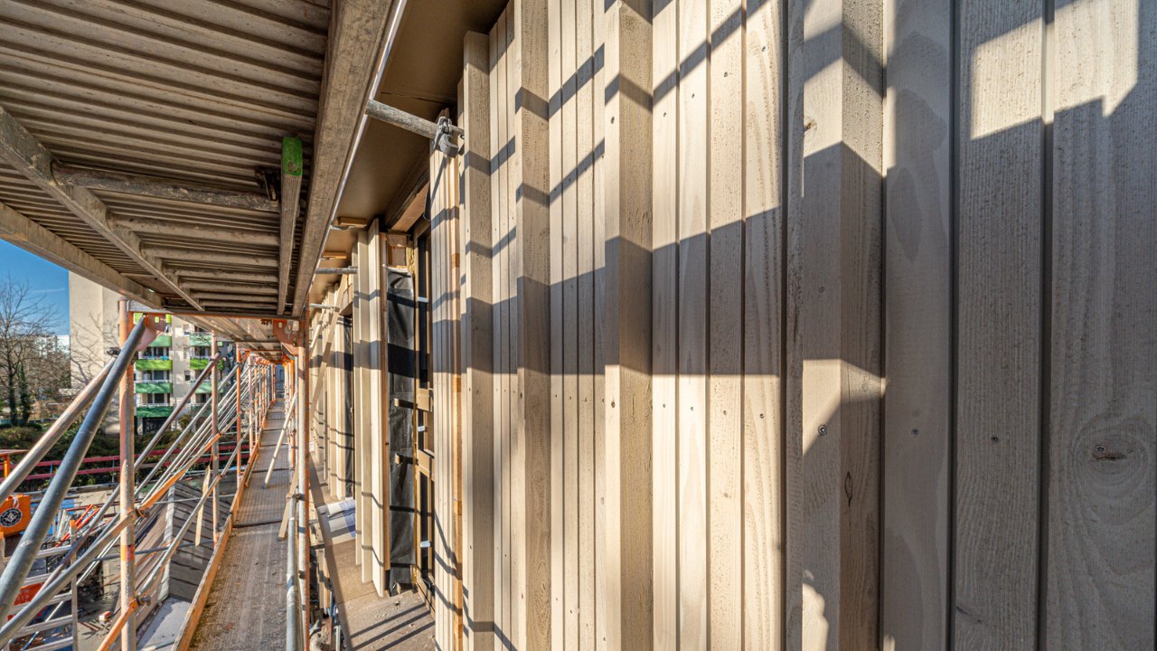 Der Entwurf stammt vom Architekturbüro Lanz Schwager & Partner und geht auf ein städtisches Wettbewerbsverfahren zurück. Das Gebäude wird in Holzhybridbauweise errichtet und erfüllt den Effizienzhausstandard 55. Die Wärmeversorgung erfolgt über das Fernwärmenetz. Begrünte Dachflächen, Photovoltaikanlagen, ein Unterflursystem zur Abfallentsorgung sowie vorgerüstete Stellplätze für E-Fahrzeuge in der Tiefgarage ergänzen das Konzept. Vier Carsharing-Plätze auf dem Grundstück unterstreichen den Anspruch an eine zeitgemäße, gemeinschaftlich orientierte Mobilität.